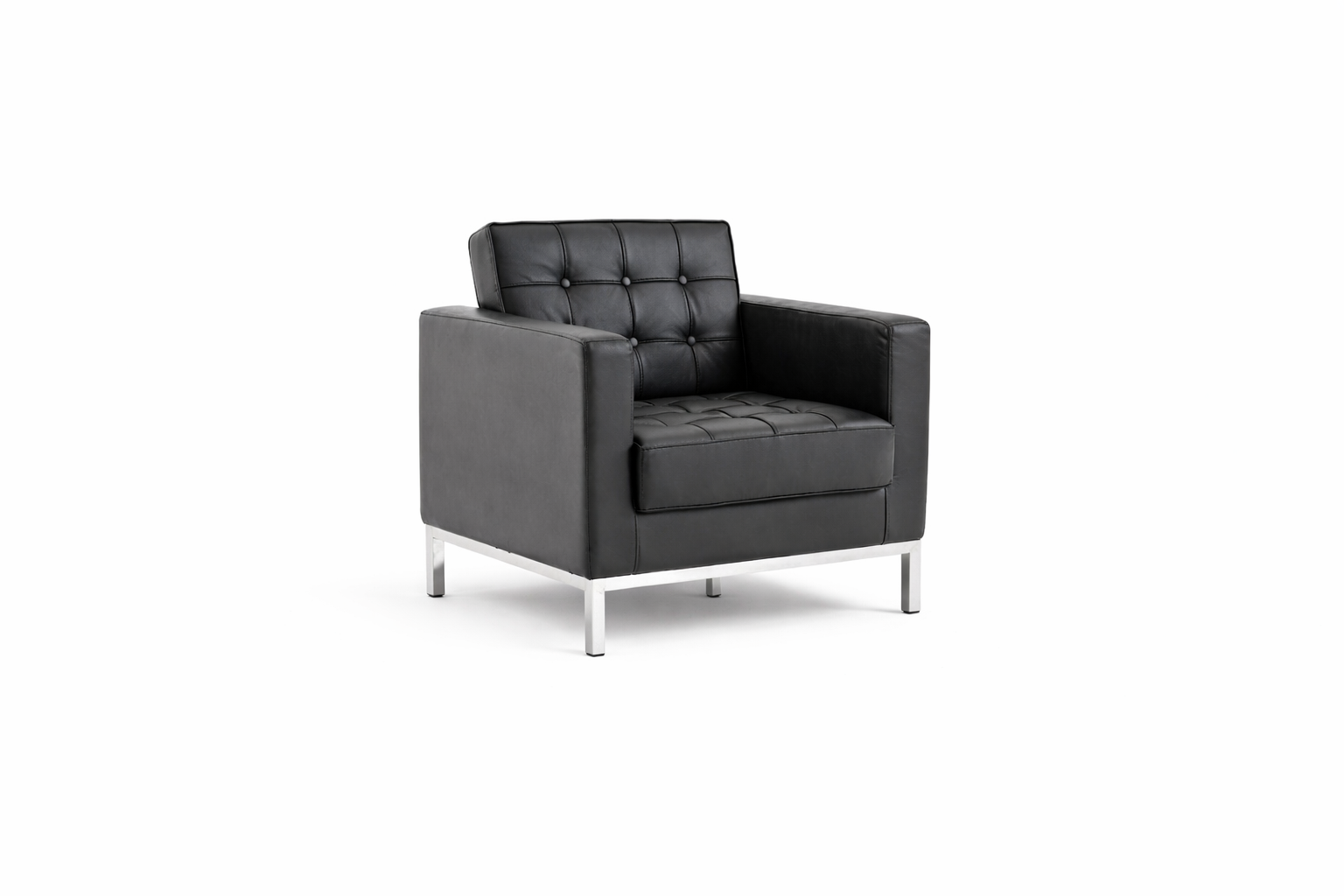 ✔ Bonded black leather ✔ Chrome legs ✔ Button detail
