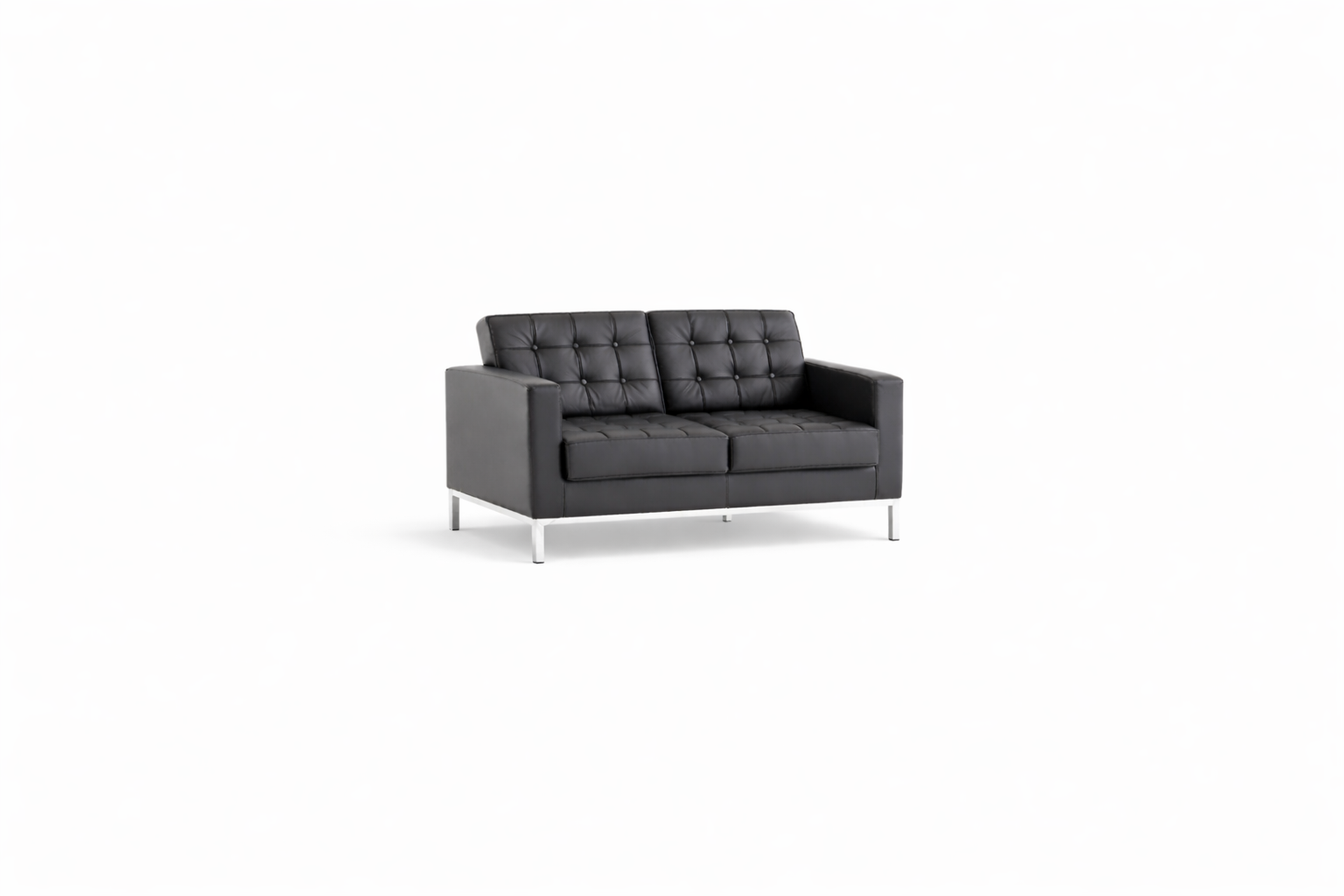 ✔ Bonded black leather ✔ Chrome legs ✔ Button detail