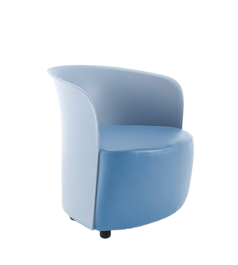 Incredibly generous seating proportions meet curvaceous design and enviable comfort levels. Costa poly armchair with black feet, available with either grey or blue shells.