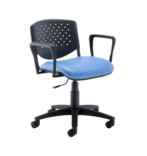 A compelling tweak to our standard E65 chair with the introduction of a black perforated polymer backrest. Breathable and comfortable, this chair will fit seamlessly in to any conference, meeting or waiting area. Specify with black or chrome four legged frame, swivel base and optional armrests.