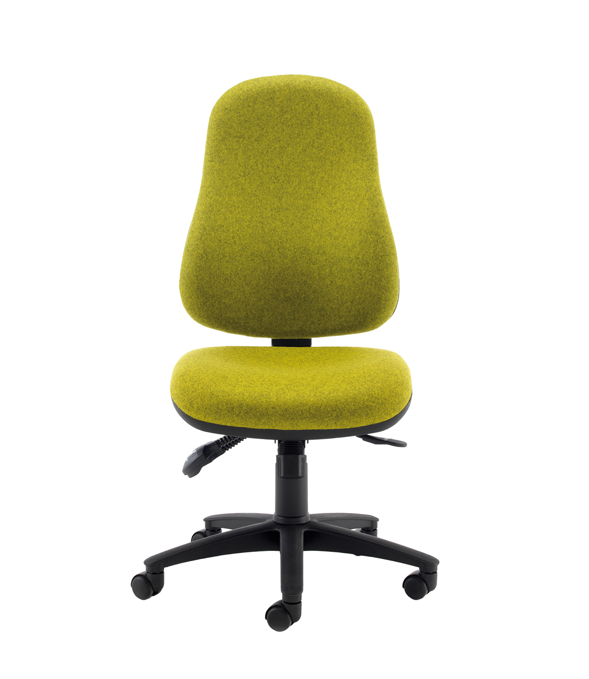 Posture chair with large backrest, seat slide and memory foam standard seat.