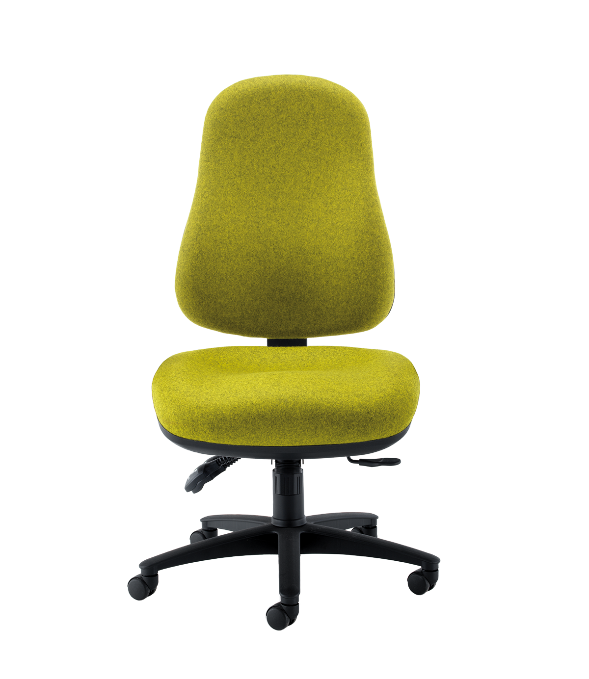 Posture chair with large backrest, seat slide and contoured extra large seat.
