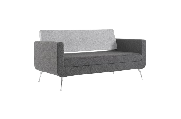 Available in one, two and three seater variants, the distinctive character of this range is achieved by combining subtle contours and generous proportions with a suspended back, angled to maximise comfort and support. Two seater sofa with suspended back and chrome legs.