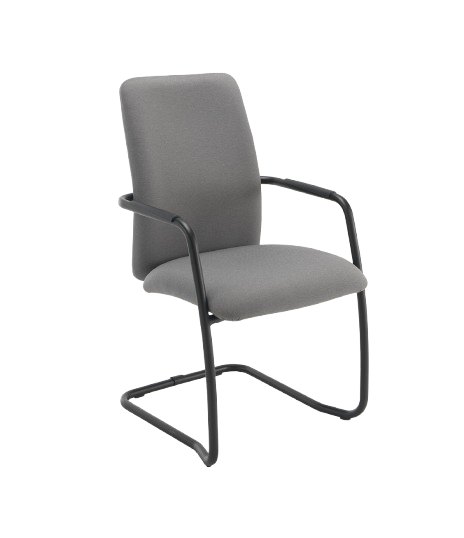 Elegant stackable meeting and conference chairs with black frames. High back cantilever black stacking armchair.
