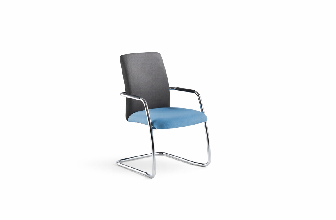 Elegant stackable meeting and conference chairs with chrome frames. High back cantilever chrome stacking armchair.