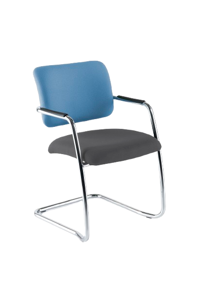 Elegant stackable meeting and conference chairs with chrome frames. Medium back cantilever chrome stacking armchair.