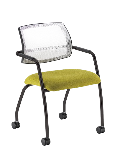Elegant stackable meeting and conference chairs with mesh back detail, available with chrome or black frame.