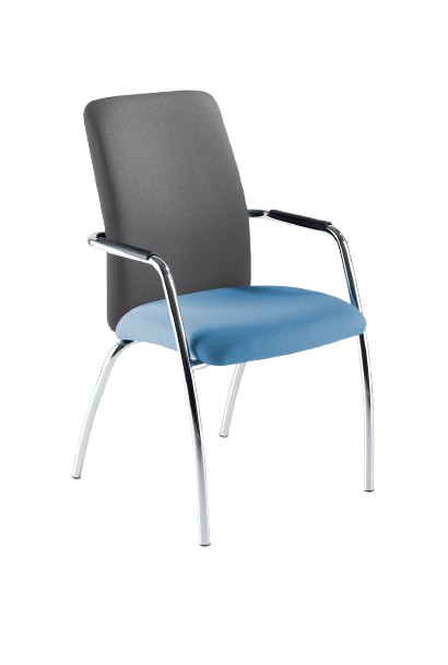 Elegant stackable meeting and conference chairs with chrome frames. High back four legged chrome stacking armchair.