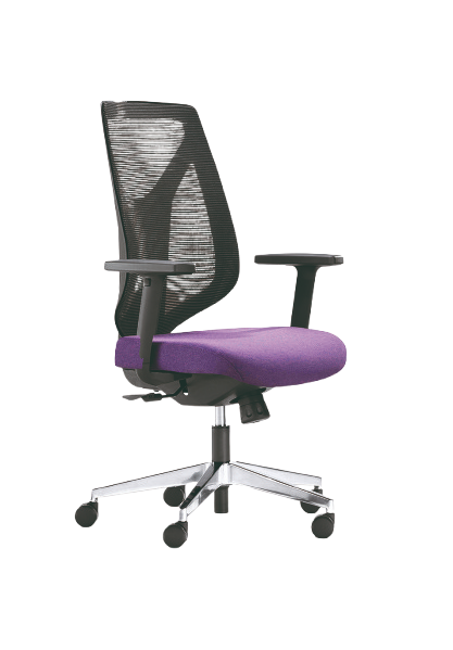 Contemporary mesh chair with synchro mechanism, seat slide and sculptured height adjustable backrest.
