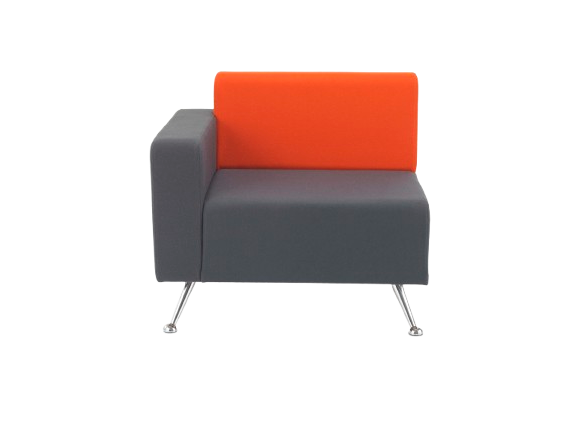 Multi-functional. Versatile. Contemporary. Dynamic. The Mosaic Plus modular range ticks many boxes. Individual components can be utilised to suit specific spaces and form a vast array of innovative and inventive configurations. Single seat bench with back, right arm and chrome legs Arm position described from sitting position.