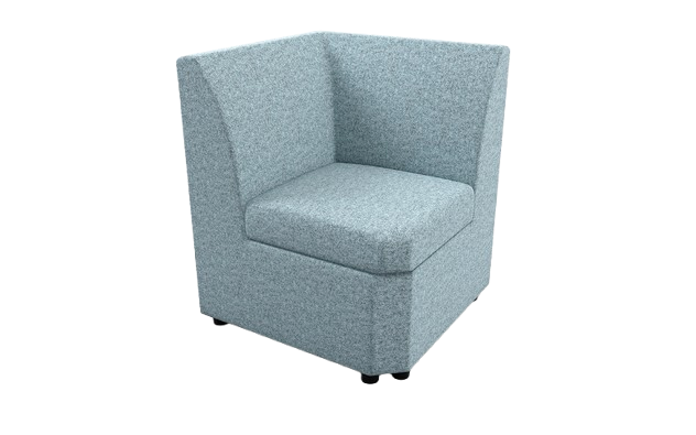 A conventional low-level modular seating system ideal for reception and breakout areas. Corner unit with black nylon feet.