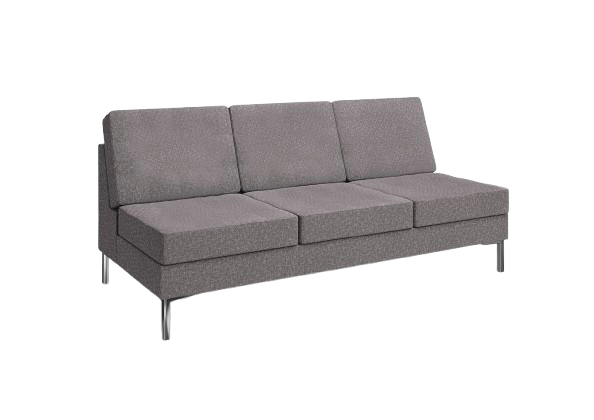 A collection of versatile modular pieces to create a multitude of layouts. Perfect for open spaces or for utilising the perimeter of your space. Three seater sofa with no armrests and chrome feet.