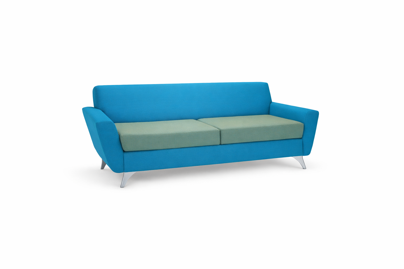 Resimercial design from Vitality allows you to specify a relaxed and classic feel with button detail and wooden feet. Alternatively, a more contemporary feel can be achieved with chrome feet and flat backrests. Three seater sofa with chrome legs.
